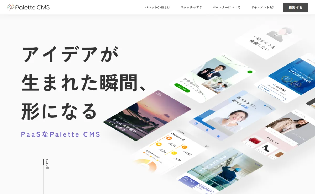 Palette CMSで作成したパッケージCMS。目的別に必要機能を実装しているため、項目や画像素材を変えるだけで、そのまま使うことが可能。高い柔軟性・拡張性はそのままに、制作工程なしで導入できます。